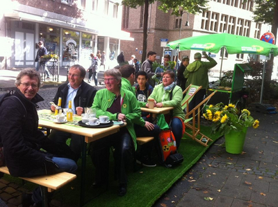 Sabine Göddenhenrich, Parteisprecherin GRÜNE Aachen, ruft zur Teilnahme an weiteren friedlichen Protesten auf.