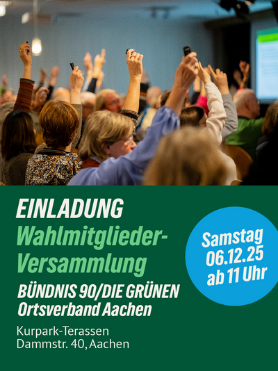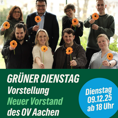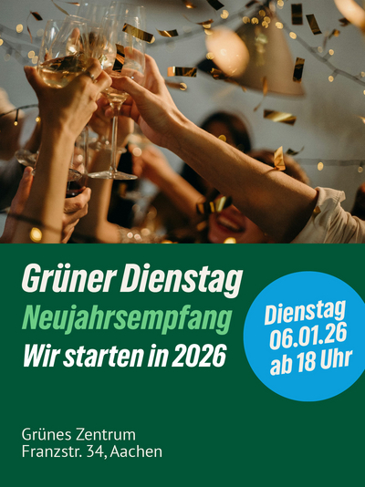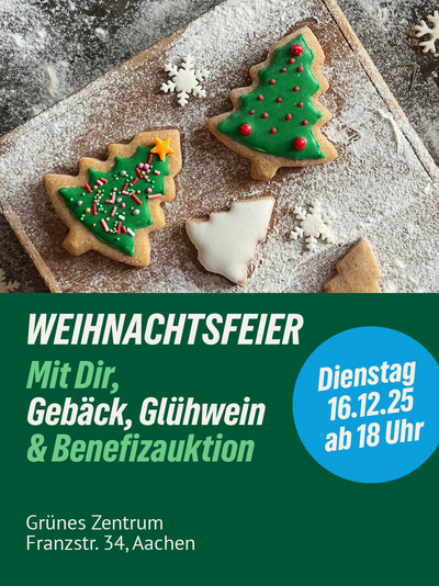 12/2025 | Ab 18 Uhr im Grünen Zentrum. Wir freuen uns auf Euch! → Grünes Zentrum, Franzstraße 34, Aachen → Dienstag, 09.12., 18:00 Uhr
